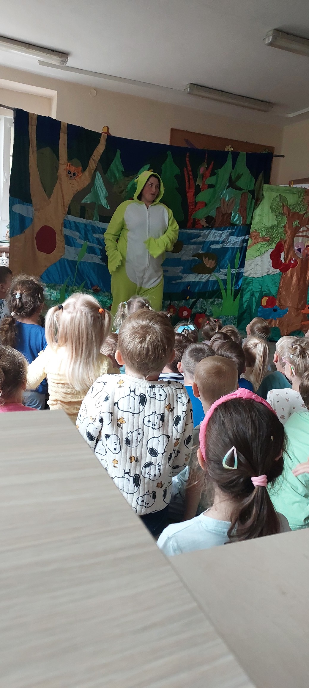 Nasze Przedszkolaki poznały dobrego duszka lasu, który spieszył z pomocą wszystkim mieszkańcom lasu oraz uczył jak ważne są dobre postawy oraz życzliwość wobec innych. Dziękujemy artystom Teatru "Magik" za emocjonujące przedstawienie.