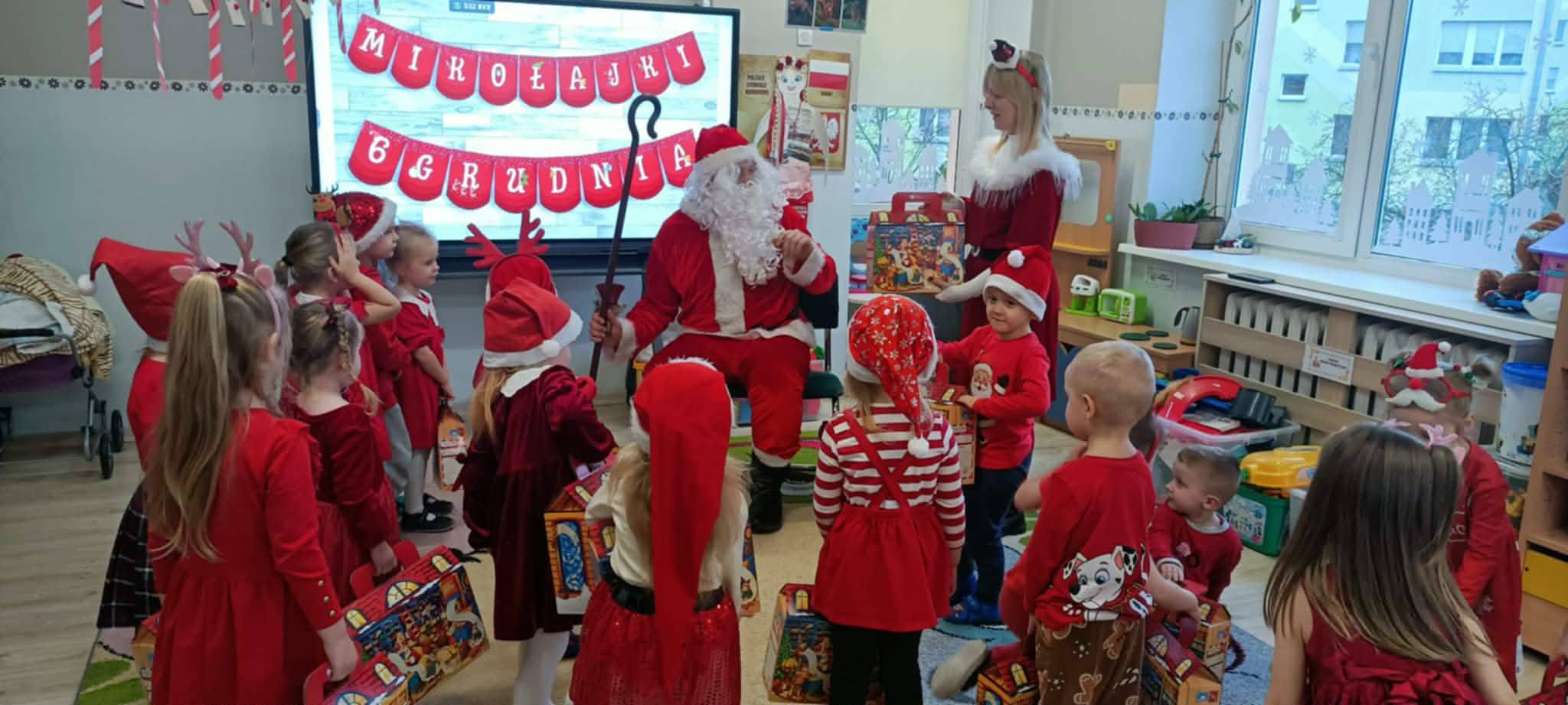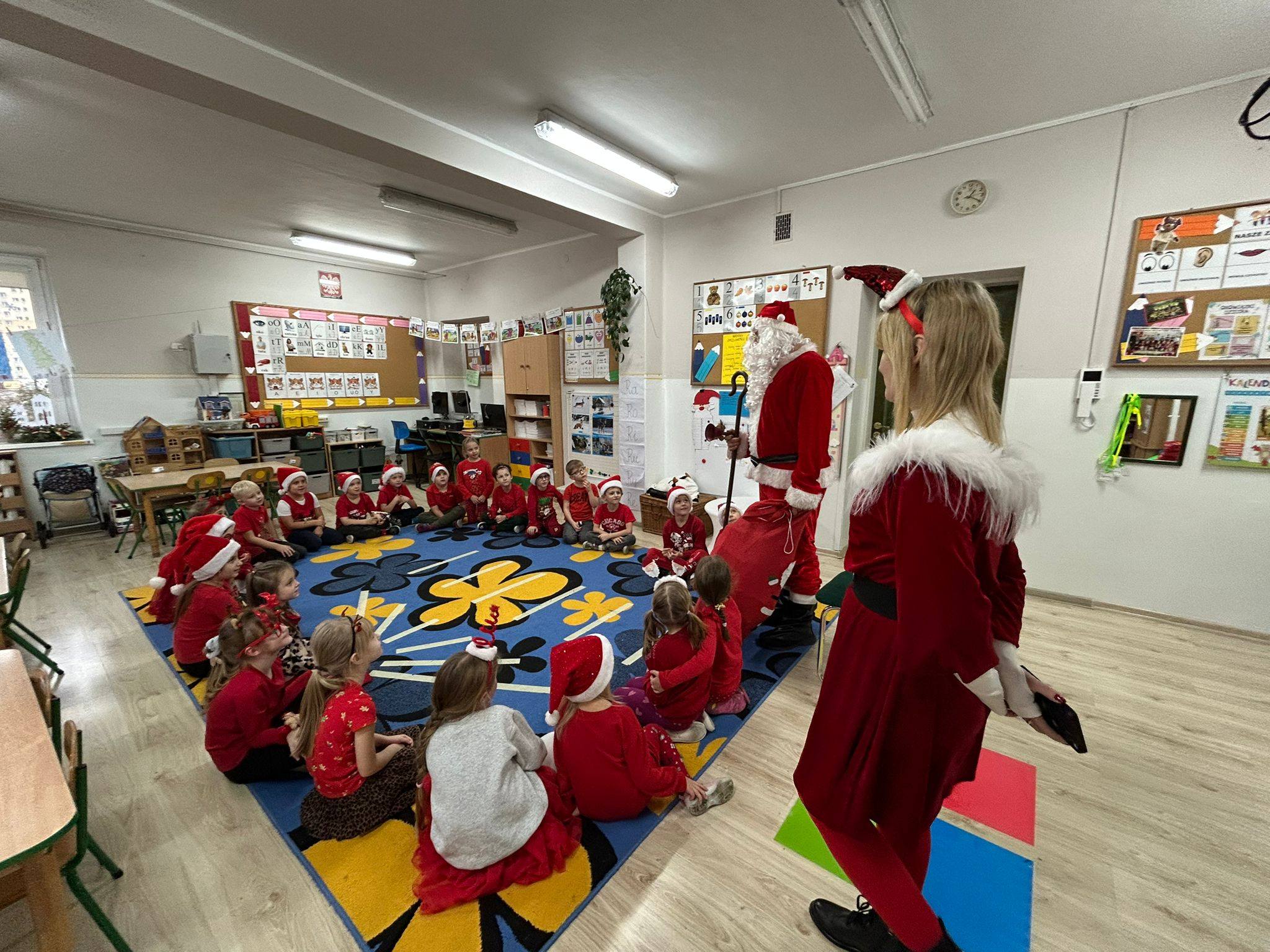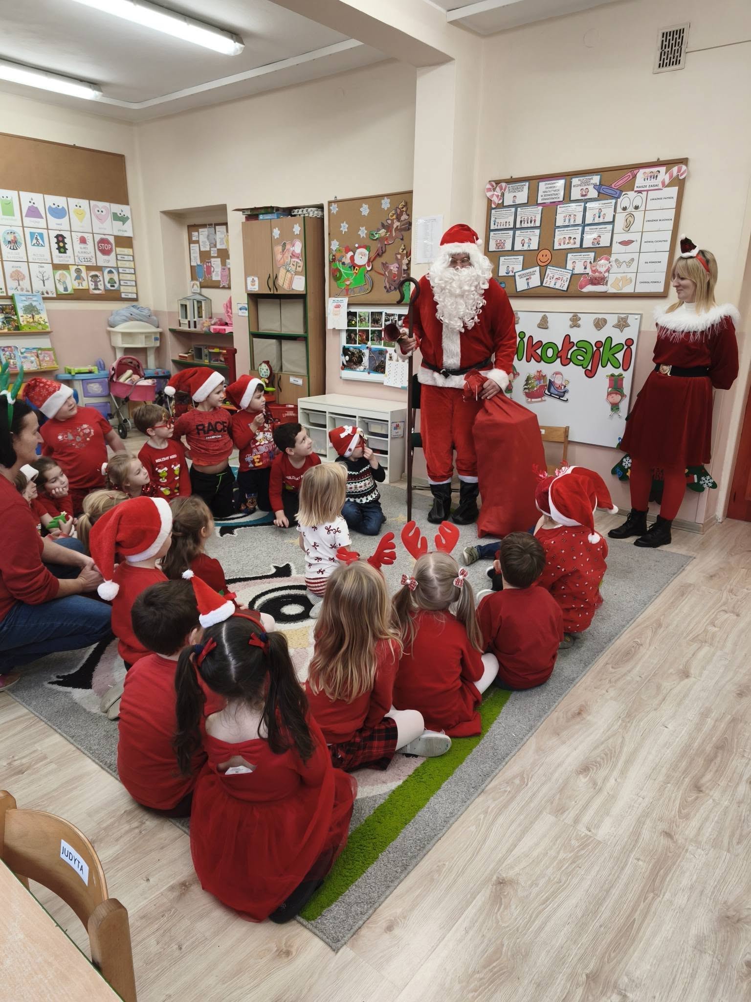 10 grudnia nasze przedszkole odwiedził Święty Mikołaj wraz z wesołą Śnieżynką. Dzieci z każdej grupy zaśpiewały dla Mikołaja piosenki, a w zamian otrzymały piękne prezenty, które sprawiły im ogromną radość. Serdecznie dziękujemy Radzie Rodziców oraz jej przewodniczącej Alicji Urbaniak za wsparcie i stworzenie magicznej atmosfery ✨. Dodatkową niespodzianką były darmowe vouchery do Imaginarium Sieradz na dwie godziny wspaniałej zabawy.