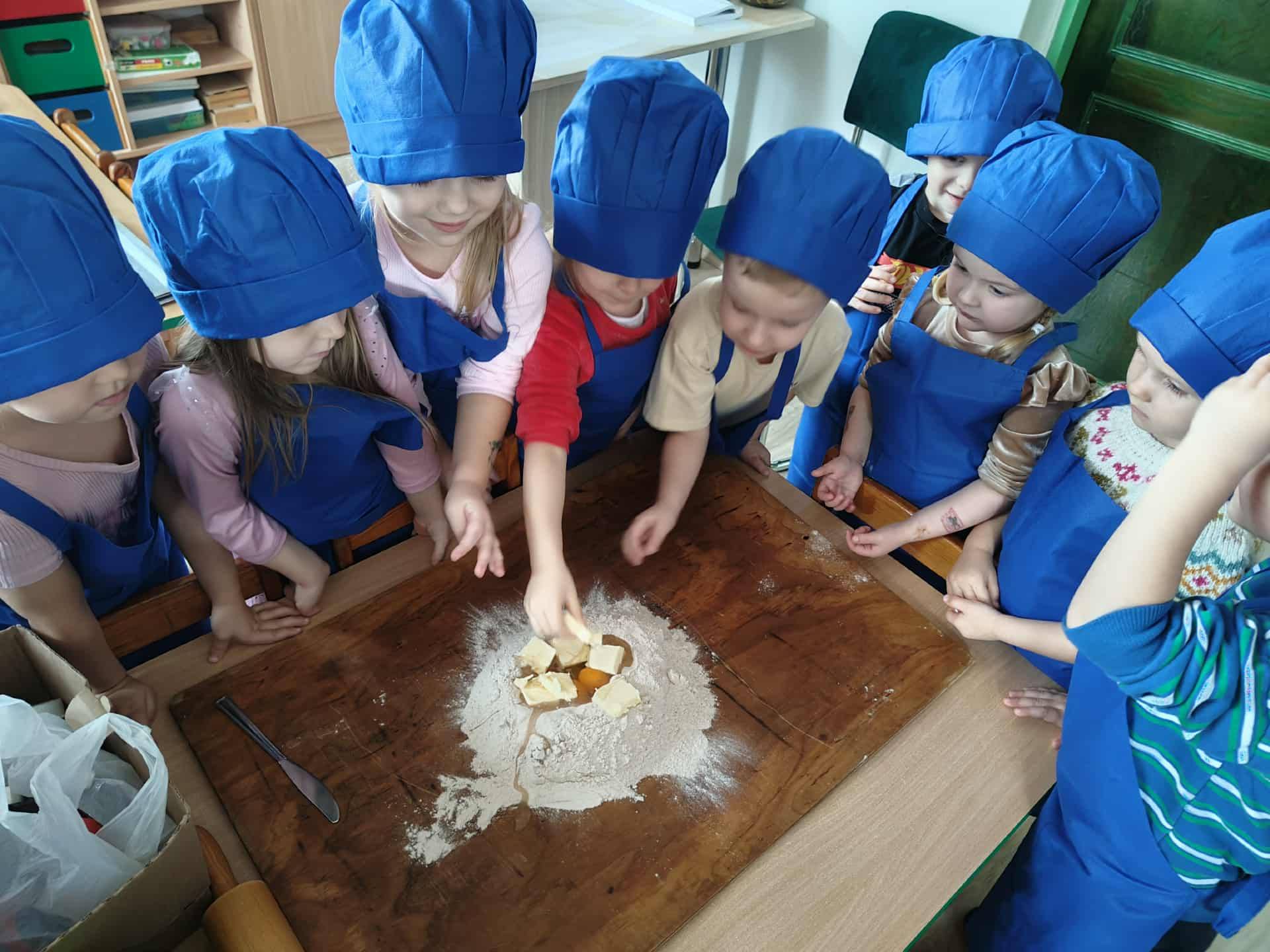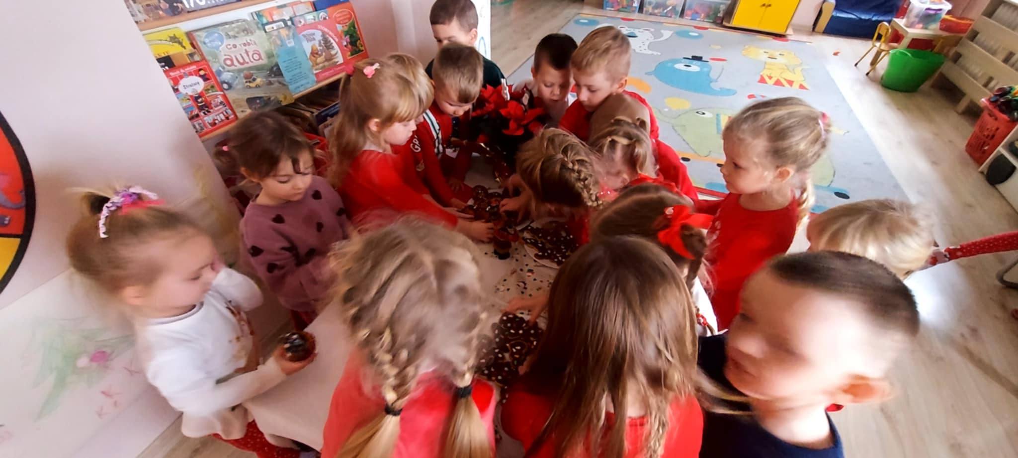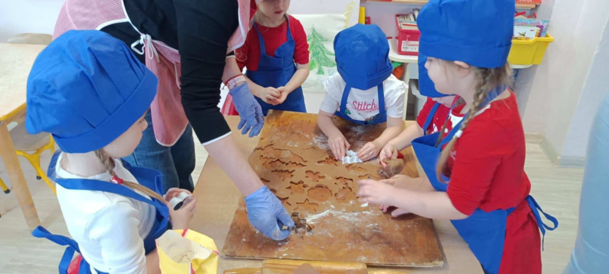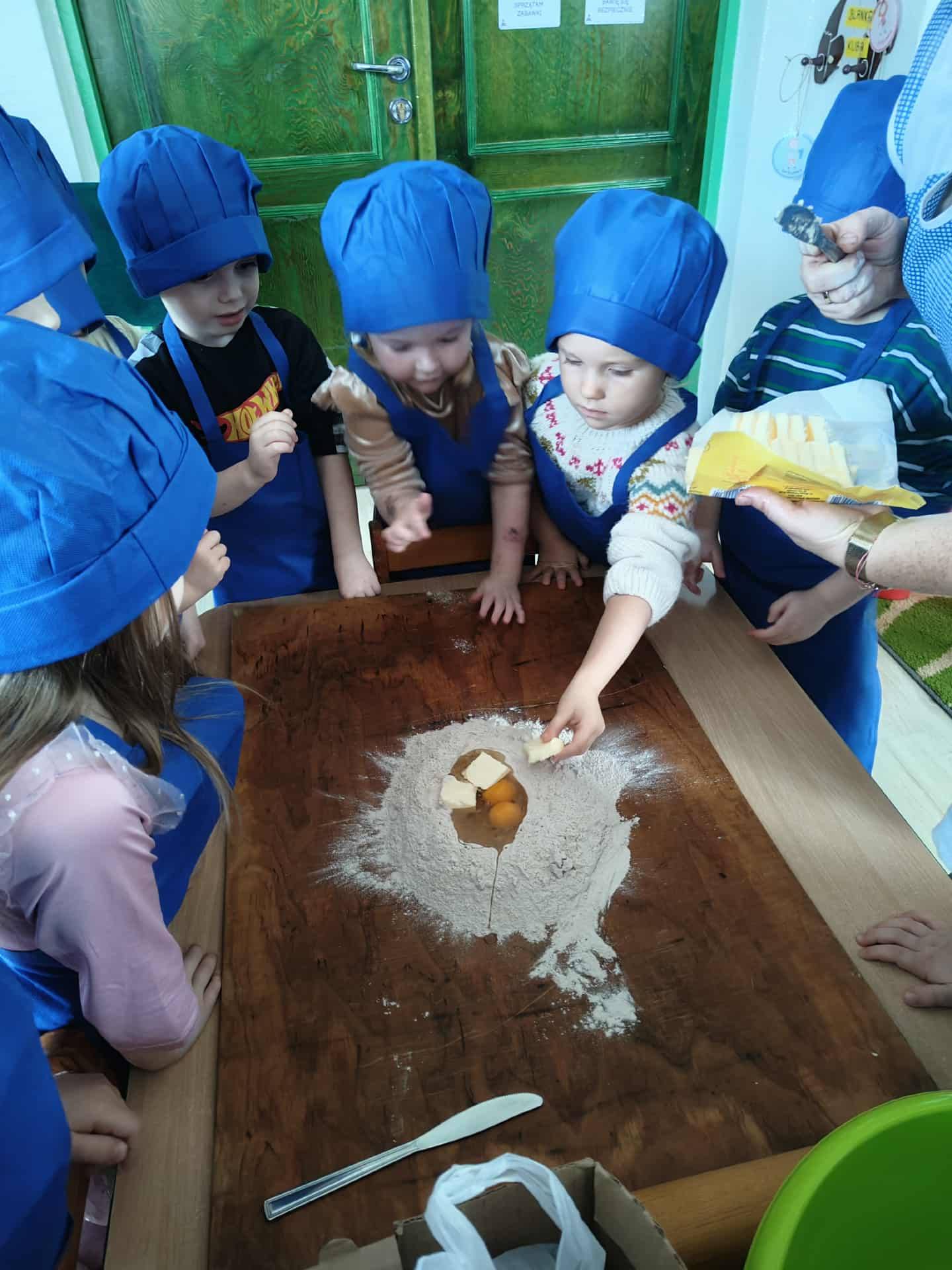 Jak jest Mikołaj to muszą być pierniczki, których na szczęście dla wszystkich wystarczyło :) Małe i pracowite Elfy z grup 4-latków już od rana lepiły i wykrawały pyszne ciasteczka, którymi uraczały Mikołaja i Śnieżynkę ;)
