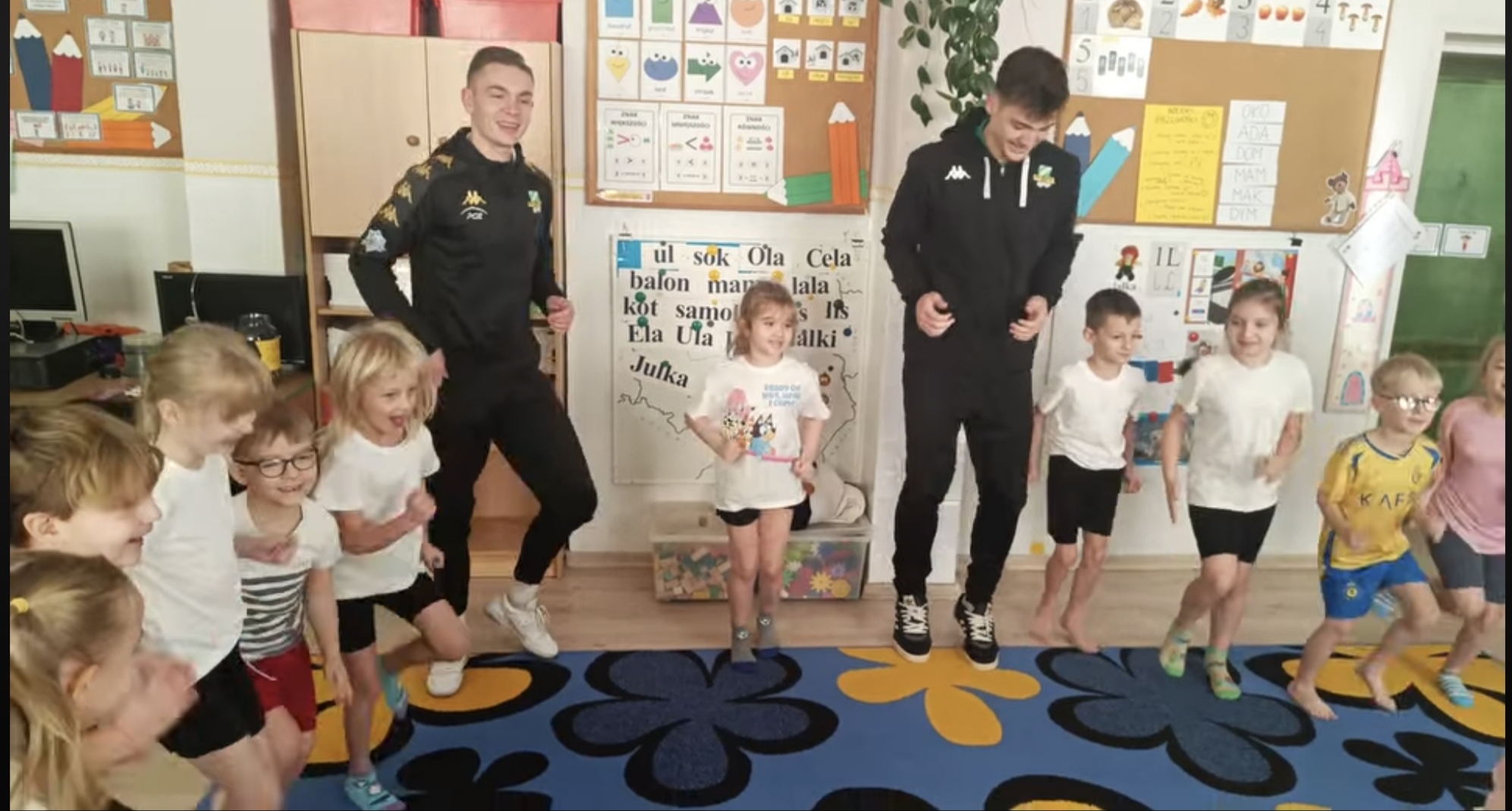 W naszym przedszkolu dbamy o aktywność ruchową naszych Milusińskich. Oprócz licznych spacerów, wycieczek pieszych po pięknym naszym mieście oraz zabawach ruchowych w ogrodzie, staramy się różnymi sposobami rozbudzić zainteresowanie sportem. Stąd też w grudniu odbyły się w grupie 6 latków zajęcia z piłkarzami Klub Sportowy Warta Sieradz, którzy opowiedzieli dzieciom o swojej pasji do sportu, pokazali kilka piłkarskich trików